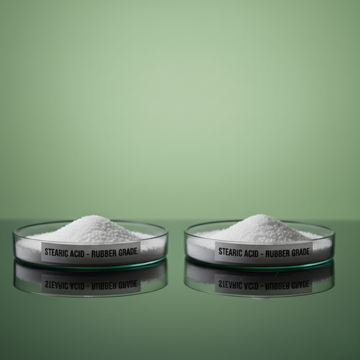 Stearic acid in rubber grade form plays a surprisingly important role in the secret mechanical ballet that turns raw elastomers into strong, flexible rubber. In this context it behaves less like a cosmetic thickener and more like a chemical diplomat, helping different ingredients cooperate during compounding. It acts as an activator in the vulcanization process—this is the heat-driven reaction that transforms soft polymer chains into a cross-linked, durable network. By reacting with zinc oxide, stearic acid forms zinc stearate, a compound that improves dispersion of fillers, accelerators, and other additives throughout the rubber matrix. Better dispersion means more consistent curing, higher mechanical strength, and improved elasticity. It also works as a mild internal lubricant, reducing friction during mixing and molding. That small reduction in resistance makes the rubber easier to process, lowers energy consumption, and decreases wear on machinery. In filled systems—especially those loaded with carbon black or mineral fillers—stearic acid helps achieve a uniform distribution, which leads to smoother surfaces and predictable material properties.   Because of these combined effects, rubber-grade stearic acid shows up almost everywhere in the rubber world: tires, conveyor belts, hoses, shoe soles, industrial seals, and countless molded components. In each case it quietly ensures that the final product is stronger, more stable, and more reliable. As with many ingredients in polymer chemistry, its magic lies not in a dramatic reaction but in the subtle way it shapes the behavior of all the ingredients around it.